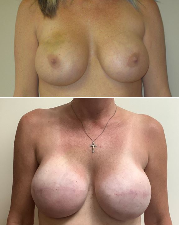 Before Stage I Bilateral Breast Reconstruction; After Stage I Bilateral Breast Reconstruction with placement of expanders; After Stage II Bilateral Breast Reconstruction with placement of Allergan Implants
